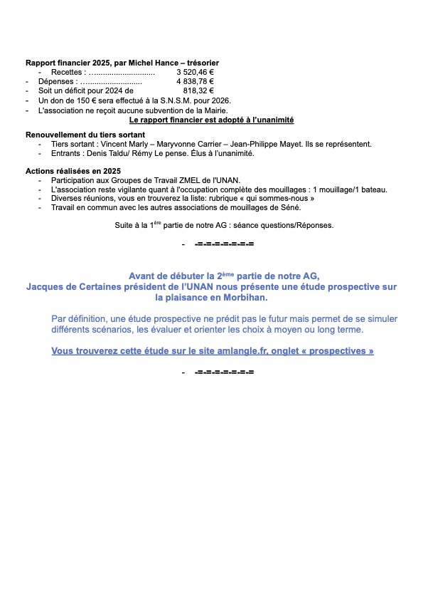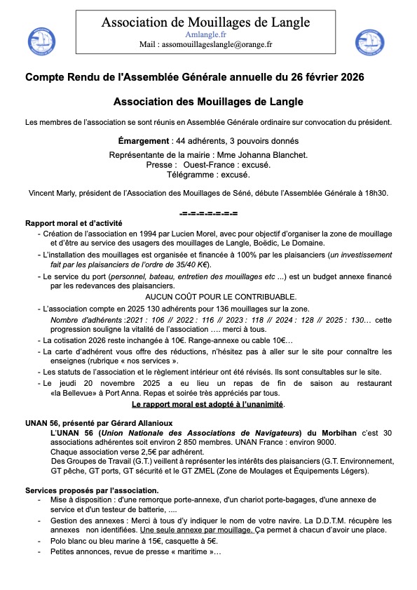 29/03/25 AG Association des Mouillages de Langle.