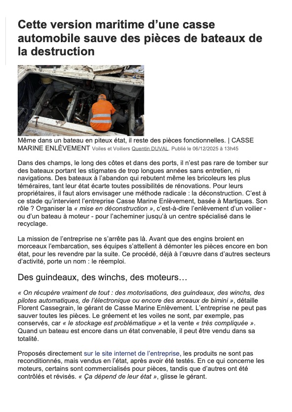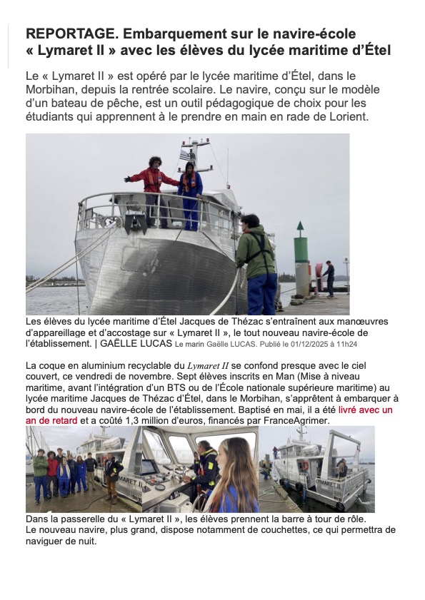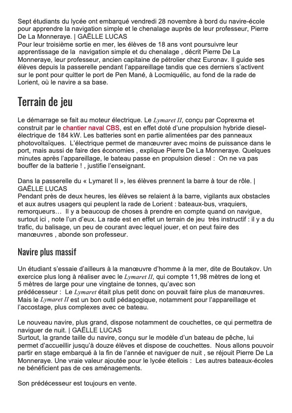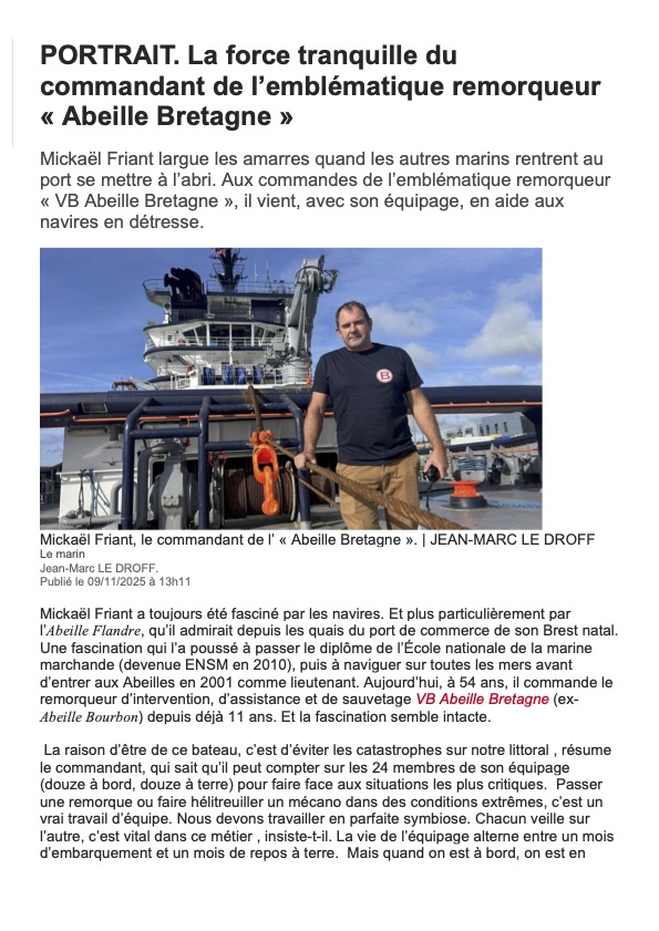 "Je garde en mémoire un entretien entre deux employés des Affaires Maritimes de Vannes, lors de mon incorporation comme novice inscrit maritime en 1954? Après avoir répondu aux questions qui m'étaient posées et alors que le m'apprêtais à quitter les lieux, l'un des deux employés présents dit à l'autre.