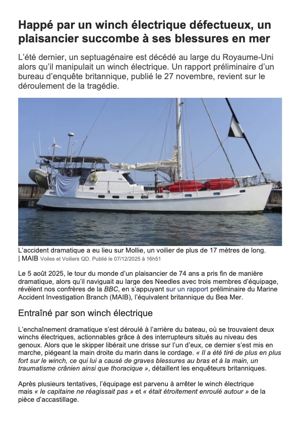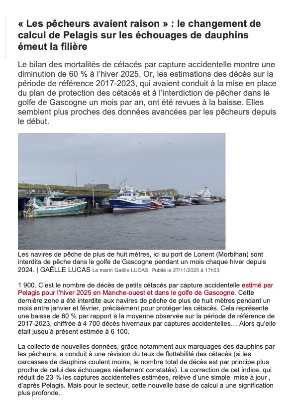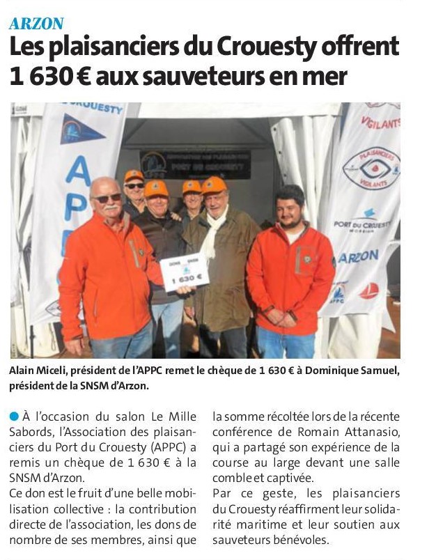 1er Décembre 1995 : La position GPS des mouillages du chenal de Langle est communiquée à la DDE.