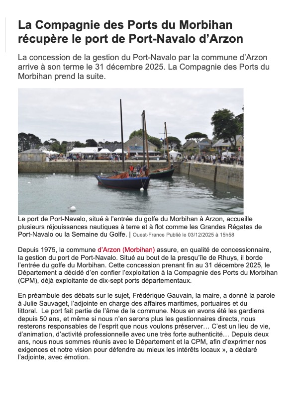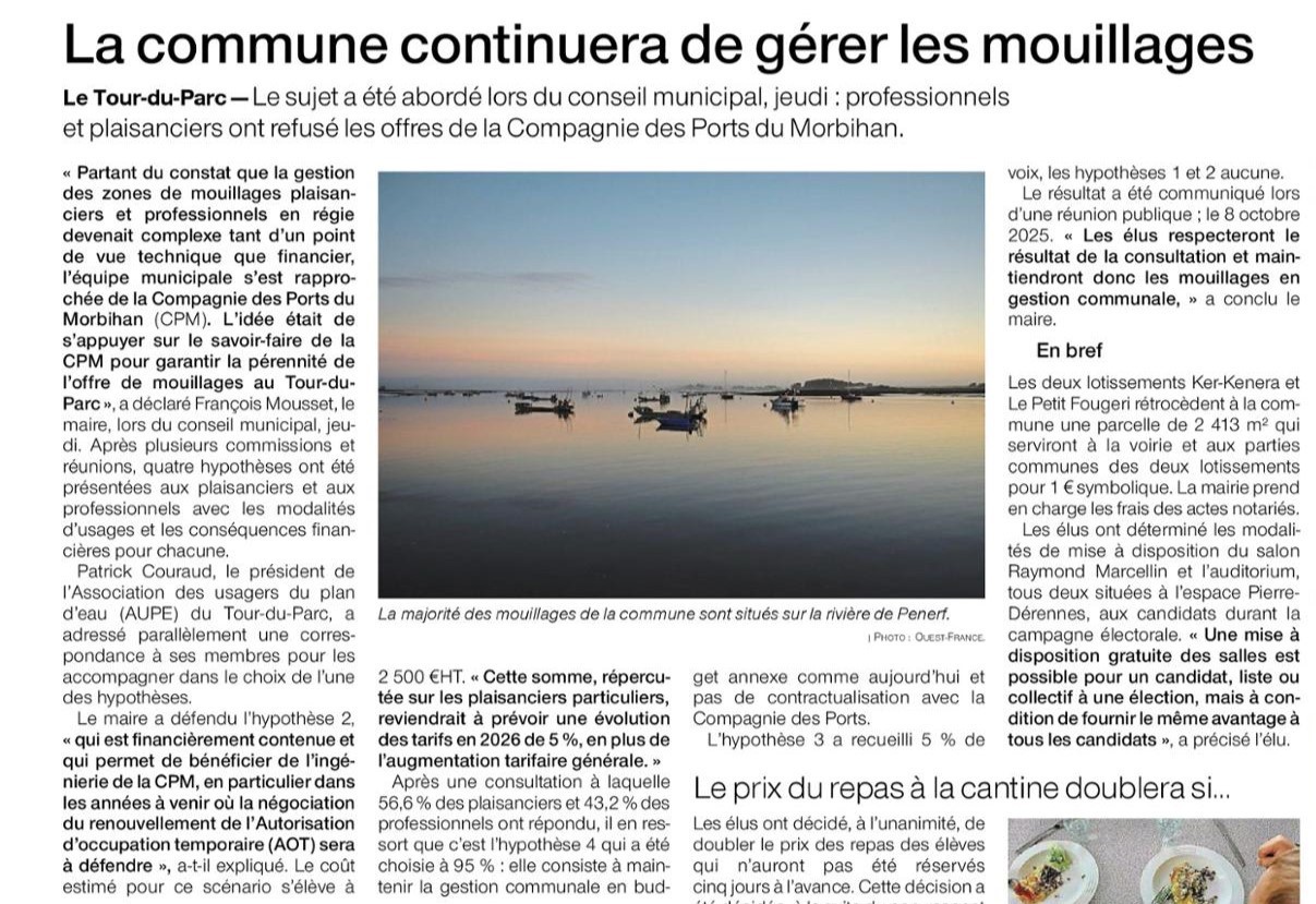 12 Décembre 1996 : Transfert de la responsabilité et de la gestion des mouillages de l’état à la commune de Séné et création d'un poste de responsable des mouillages Gildas Leroy ... également Sinagot.
